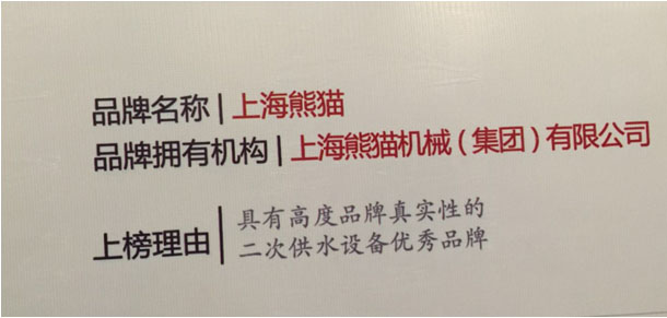 上海熊貓機(jī)械(集團(tuán))有限公司因具有高度品牌真實(shí)性的二次供水設(shè)備優(yōu)秀品牌而榮居榜上。